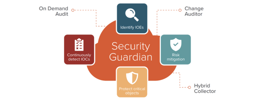 Quest의 Security Guardian은 공격자가 네트워크나 시스템에 침투하기 위해서 악용할 수 있는 모든 진입점 과 취약점을 크게 줄이기 위해 설계된 하이브리드 Active Direcroty 보안 솔루션 입니다.